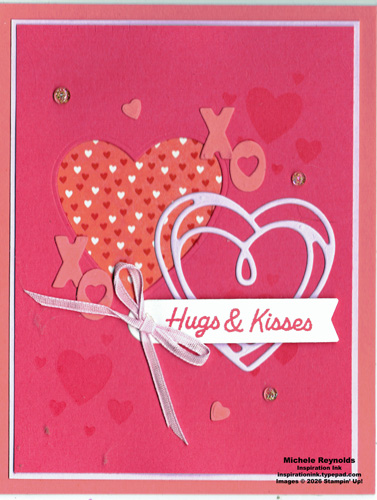 This is one of the cards we made in my Love Is In The Air Stamp Camp on Saturday afternoon before the snowstorm hit! I’m also sending it out to my mother-in-law for Valentine’s Day. It uses the Endless Love Bundle from the new Mini Catalog.
