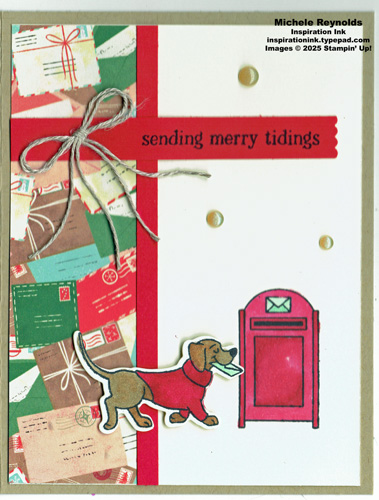 I did a little masking while making this adorable Christmas card so that my mailbox would be a bit taller. It uses the cute Jolly Delivery Bundle from the Mini Catalog.