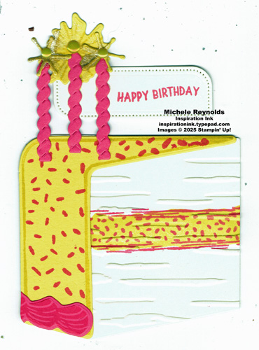 I love that Stampin’ Up!™ has started to introduce dies and coordinating sets that allow you to create fun, shaped cards. I used the Cake Day Bundle available soon as an Online Exclusive to make this fun birthday card I’m sending to a customer.