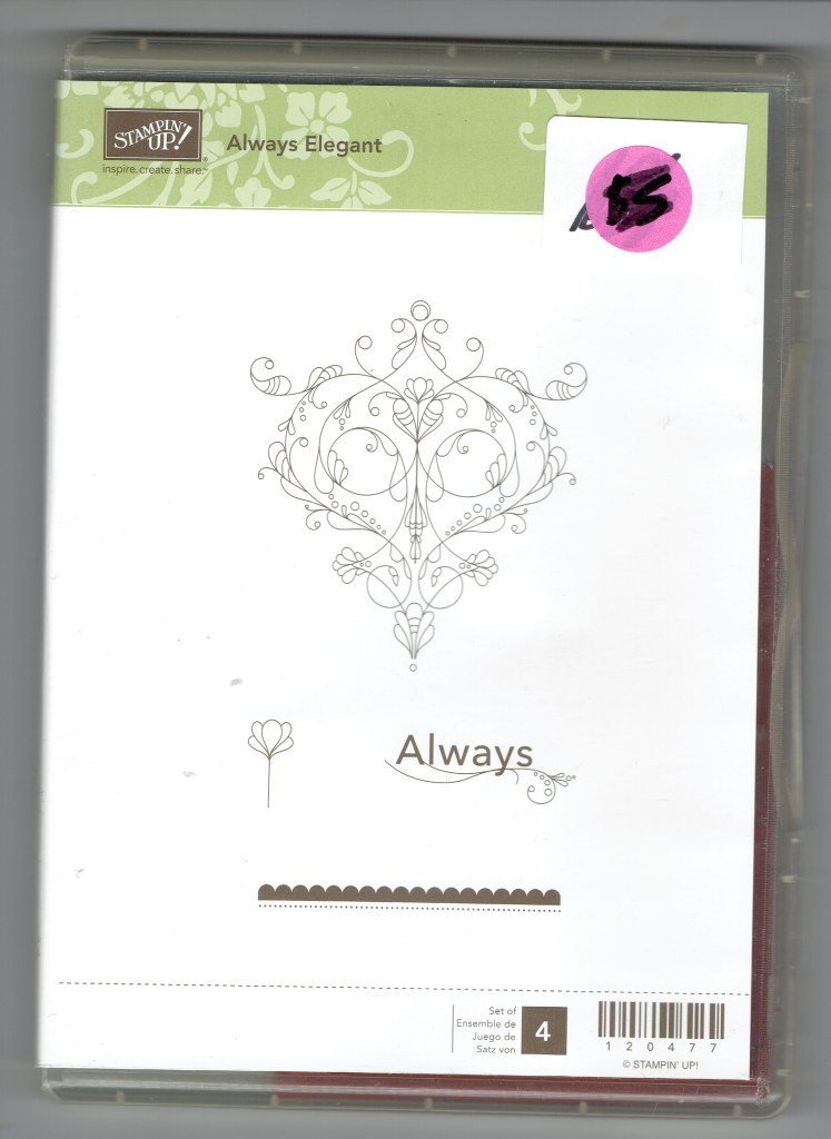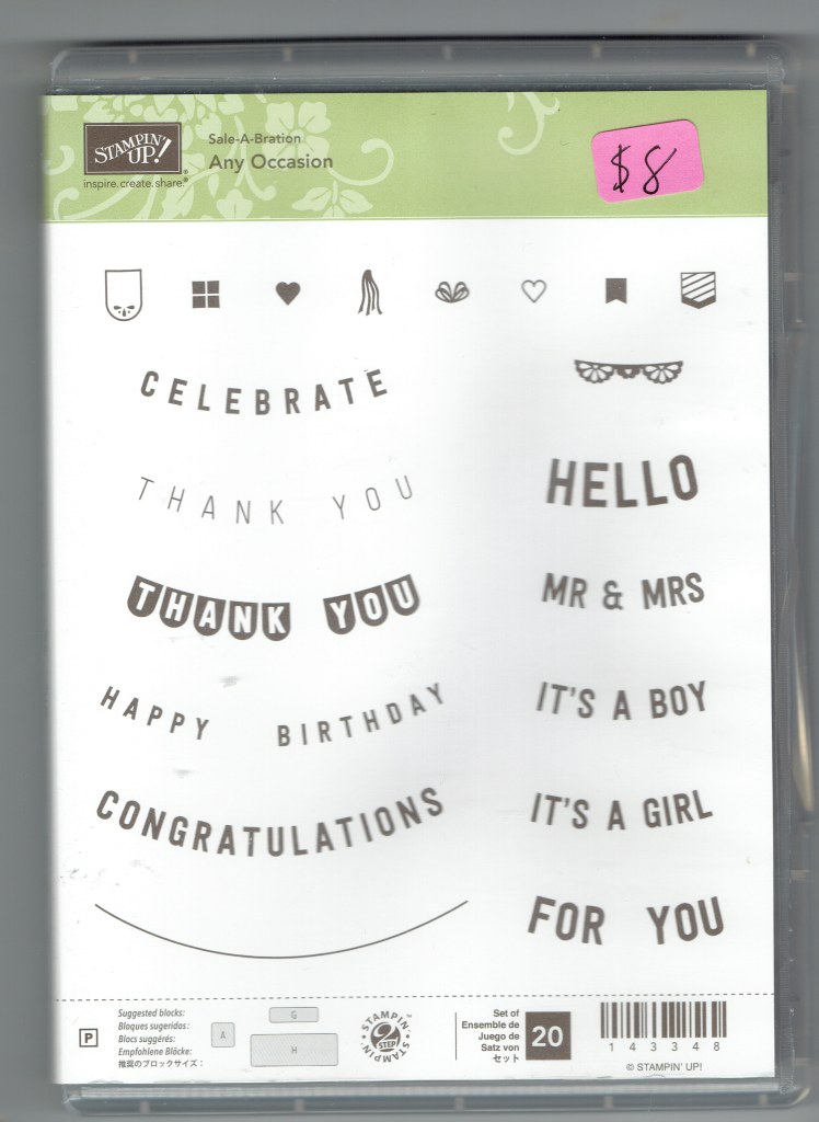 I have a ton of retired merchandise for sale. All products are from a smoke-free environment. Most have been used but are in good condition. Here are the stamp sets that begin with the letter A that I have available. If a set has a coordinating retired die set, embossing folder, or punch, that item is shown next to it as well. Items are available separately though. All stamp sets are on sale for just $5 per set. Die sets are $10 each, embossing folders are $3 each, and punches are $8 each. If a price shown on a sticker on an item is less than the price quoted above, you pay the lesser price on the sticker. Shipping is extra and depends on the weight of the items being shipped. If you purchase multiple items, I will ship as many as I can together to save on shipping costs for you. I accept personal checks made out to me or PayPal as payment. Items are available on a first come, first serve basis. As soon as items are sold, I will remove them from the list below. I will ship items to you as soon as payment is received and processed. Please contact me at michelerey@aol.com with the name of the item(s) you want and to arrange payment.