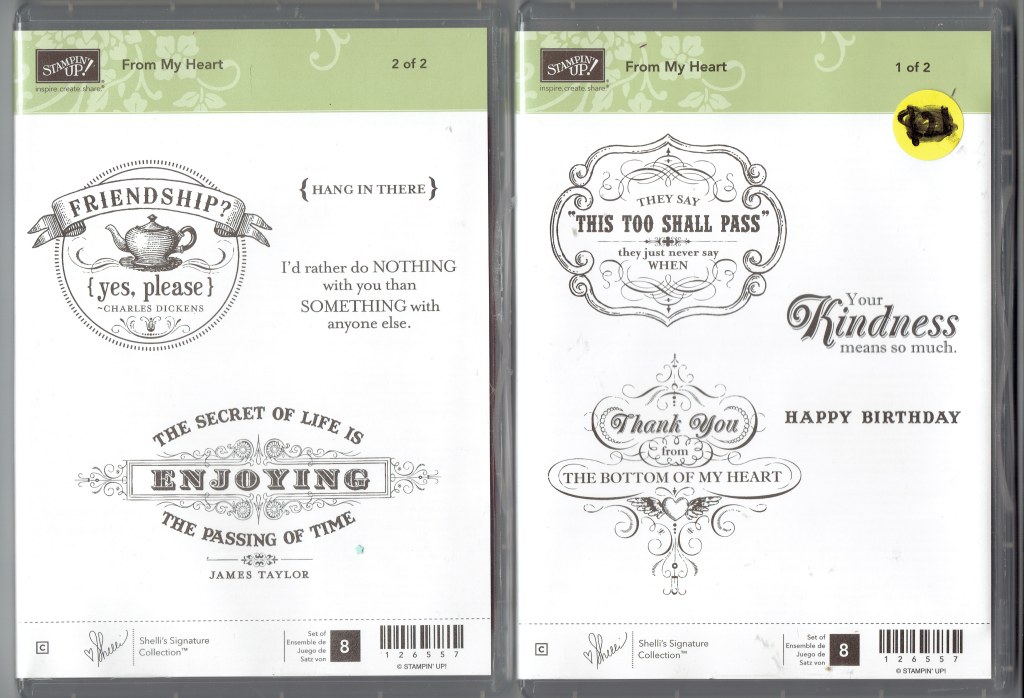 I have a ton of retired merchandise for sale. All products are from a smoke-free environment. Most have been used but are in good condition. Here are the stamp sets that begin with the letter F that I have available. If a set has a coordinating retired die set, embossing folder, or punch, that item is shown next to it as well. Items are available separately though. All stamp sets are on sale for just $5 per set. Die sets are $10 each, embossing folders are $3 each, decorative masks are $8, and punches are $8 each. If a price shown on a sticker on an item is less than the price quoted above, you pay the lesser price on the sticker. Shipping is extra and depends on the weight of the items being shipped. If you purchase multiple items, I will ship as many as I can together to save on shipping costs for you. I accept personal checks made out to me or PayPal as payment. Items are available on a first come, first serve basis. As soon as items are sold, I will remove them from the list below. I will ship items to you as soon as payment is received and processed. Please contact me at michelerey@aol.com with the name of the item(s) you want and to arrange payment.