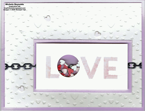 We made this fun shaker love card during my Love Is In The Air Stamp Camp over the weekend. It uses the Hope Love & Joy Bundle from the new Mini Catalog. I’m sending it to my sister-in-law for Valentine’s Day.