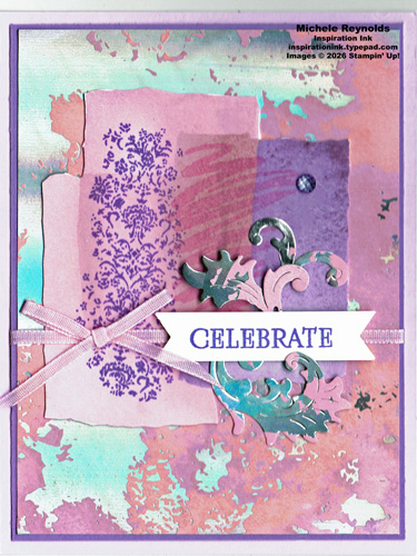 I sent this pretty, shiny card to a friend for her birthday. It uses the Beautiful Motifs Bundle and lots of the Splash Of Sparkles Specialty Designer Paper.