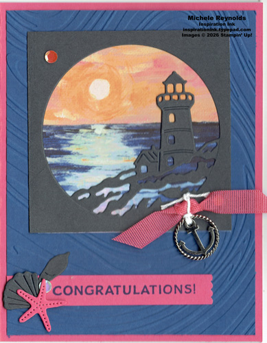 The Sunset Coast Bundle, Sunset Coast Photopolymer Stamp Set, Sunset Coast Dies, Scenic Coast 6″ x 6″ Specialty Designer Series Paper, Sunset Sparkle Sequins, and Loose Anchor Trinkets, will all be available for purchase starting May 5 when the new catalog goes live.